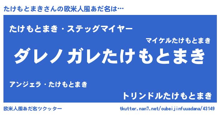 | 男性向けラノベタイトル風あだ名 | 『この素晴らしい世界にたけもとまきを!』 |