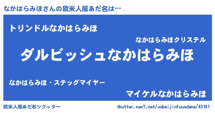 | ヘコむあだ名 | 『なかはらみほ(苦笑)』『なかにー』 |