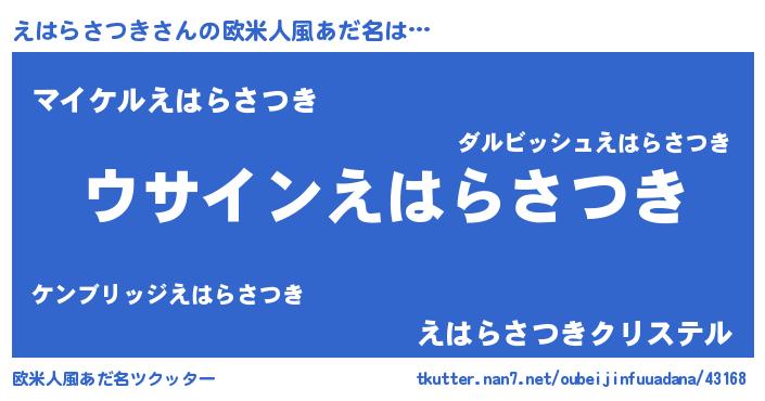 | 男性向けラノベタイトル風あだ名 | 『えはらさつきの嫁は女の子じゃないと思った?』 |