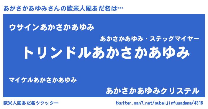 | 男性向けラノベタイトル風あだ名 | 『転生したらあかさかあゆみだった件』 |