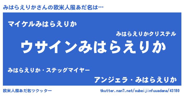 | 男性向けラノベタイトル風あだ名 | 『みはらえりかの嫁は女の子じゃないと思った?』 |
