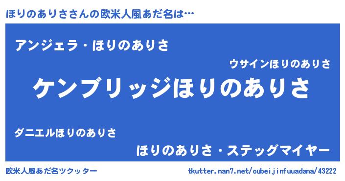 | 男性向けラノベタイトル風あだ名 | 『Re:ほりのありさから始める異世界生活』 |
