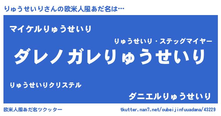 | 男性向けラノベタイトル風あだ名 | 『この素晴らしい世界にりゅうせいりを!』 |