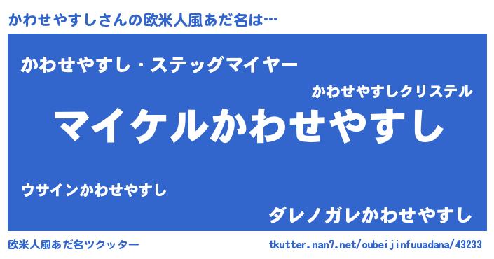 | 男性向けラノベタイトル風あだ名 | 『かわせやすしの憂鬱』 |