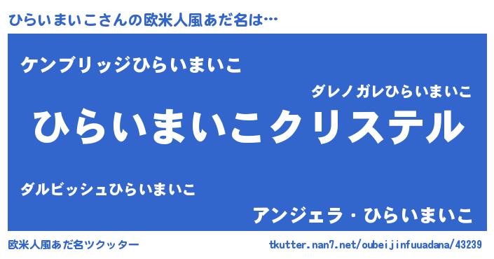 | ファンタジー風あだ名 | 『エターナルヒライマイコー』 |