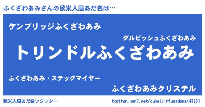 | 男性向けラノベタイトル風あだ名 | 『転生したらふくざわあみだった件』 |