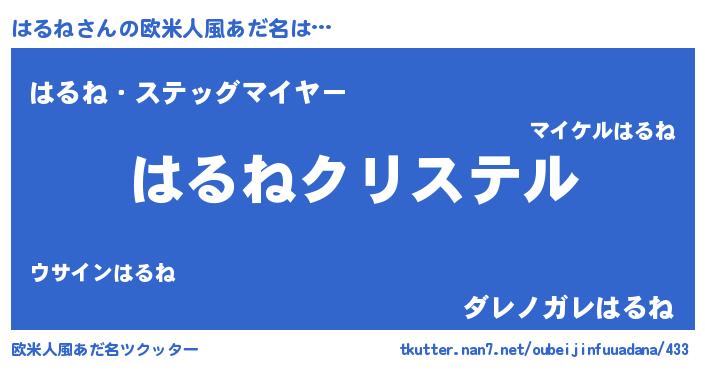 | 意味不明あだ名 | 『はるねフォーエバー』『ペロリンはるね』 |