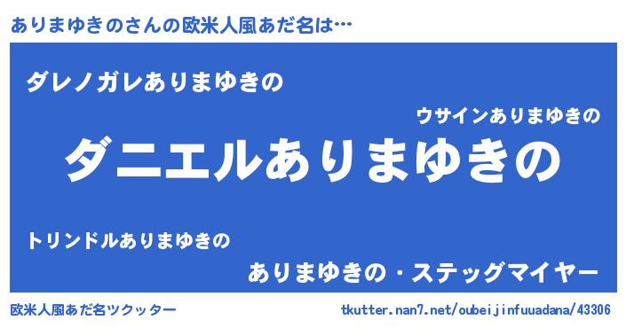 | 女子向けラノベタイトル風あだ名 | 『死神ありまゆきのの再婚』 |