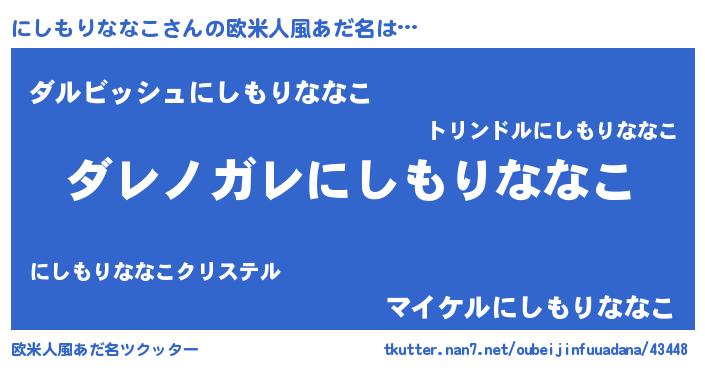 | ヘコむあだ名 | 『にしもりななこ(震え声)』『にしふぇ~』 |
