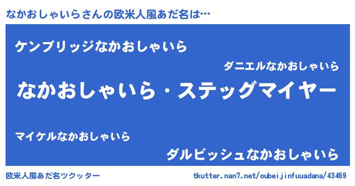 | 意味不明あだ名 | 『自称なかおしゃいら』 |