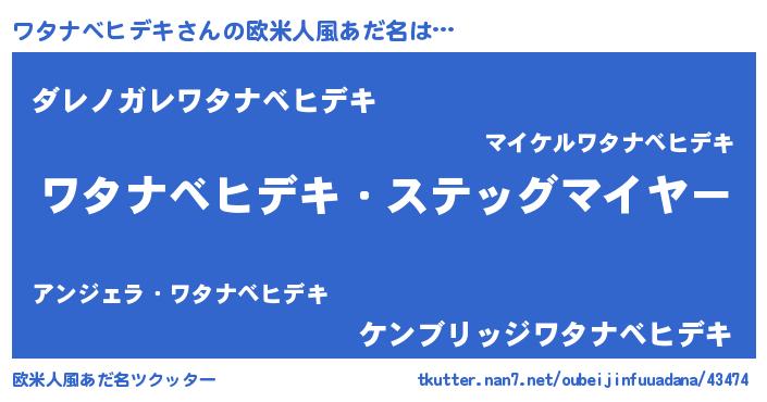 | ヒーロー風カッコイイあだ名 | 『仮面ワタダー』『ネオワタナベヒデキ』 |