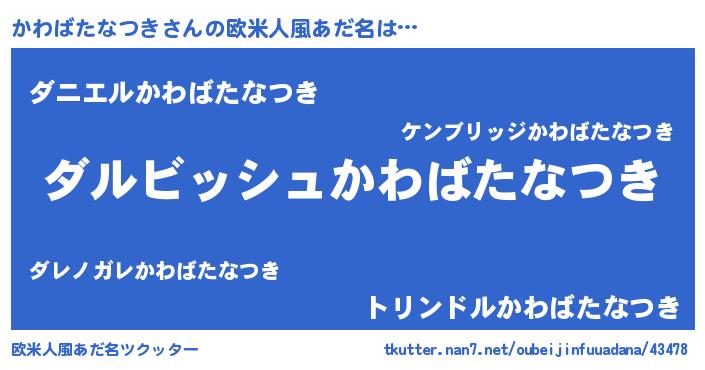 | ヘコむあだ名 | 『かわばたなつき(苦笑)』『かわにゅー』 |