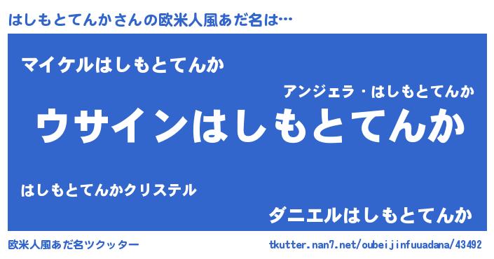 | 男性向けラノベタイトル風あだ名 | 『はしもとてんかの嫁は女の子じゃないと思った?』 |