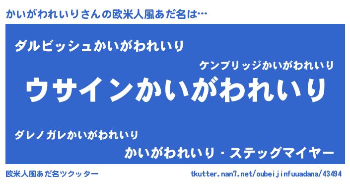 | 男性向けラノベタイトル風あだ名 | 『かいがわれいりの嫁は女の子じゃないと思った?』 |