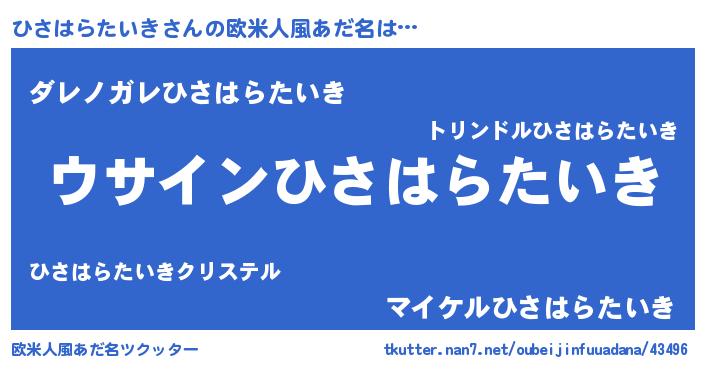 | 女子向けラノベタイトル風あだ名 | 『ひさはらたいきは平凡を望む』 |