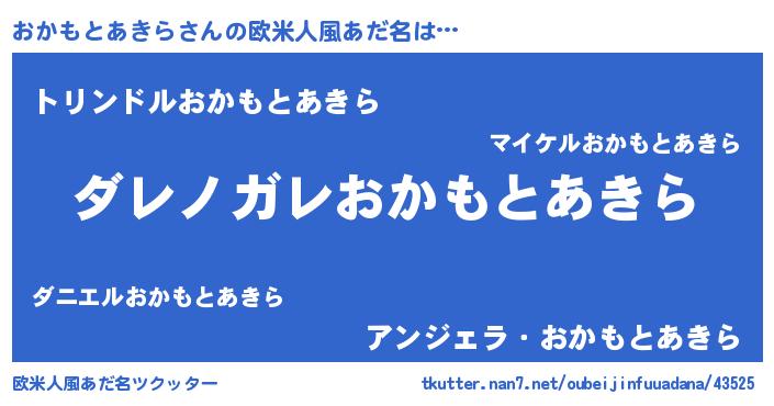 | 女子向けラノベタイトル風あだ名 | 『乙女ゲームの破滅フラグしかない悪役おかもとあきらに転生してしまった…』 |