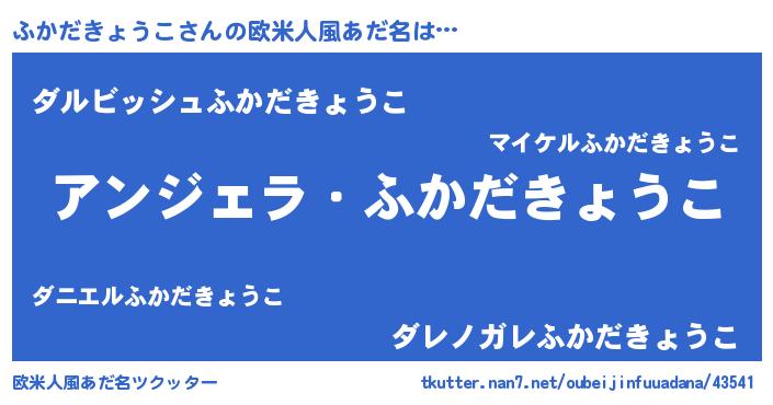 | ヘコむあだ名 | 『ふかだきょうこ(苦笑)』『ふかにー』 |