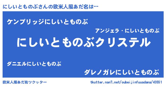 | 意味不明あだ名 | 『にしいとものぶフォーエバー』 |