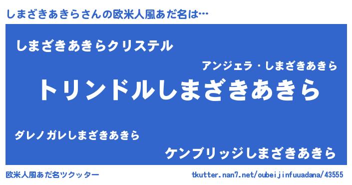 | 男性向けラノベタイトル風あだ名 | 『シマザキアキラスレイヤー』 |