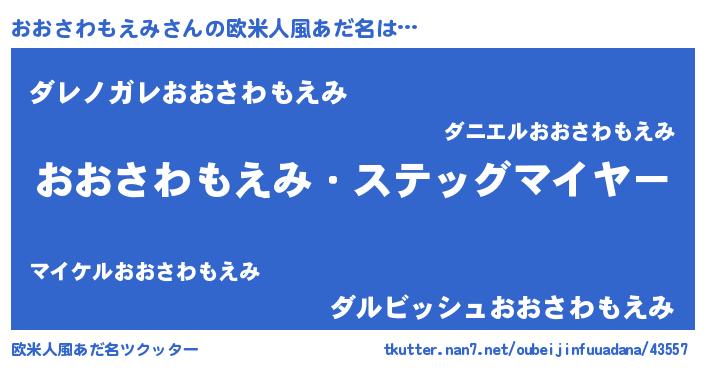 | ヘコむあだ名 | 『おおさわもえみ(震え声)』『おおっふぃ~』 |