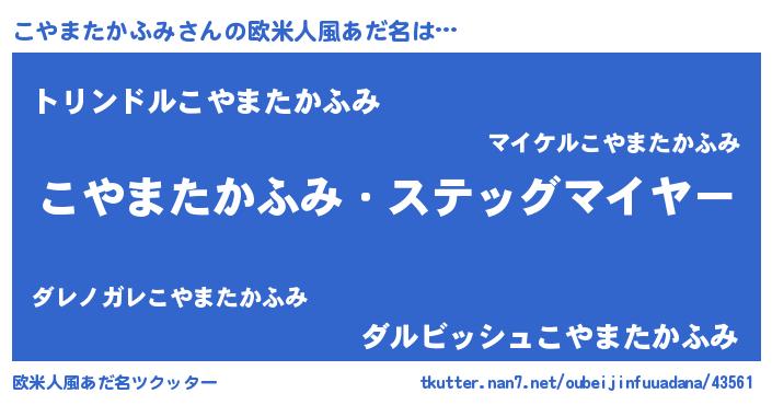 | ヘコむあだ名 | 『こやまたかふみ(遠い目)』『こやふぇ~』 |