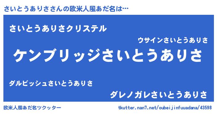 | 男性向けラノベタイトル風あだ名 | 『魔法科高校のさいとうありさ』 |