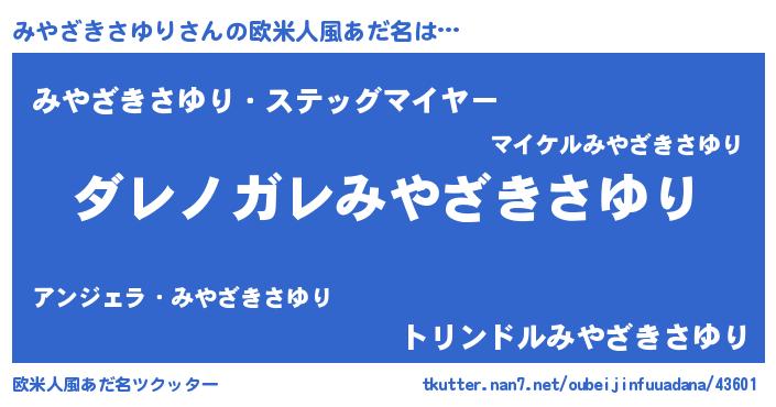 | 男性向けラノベタイトル風あだ名 | 『魔弾の王とみやざきさゆり』 |