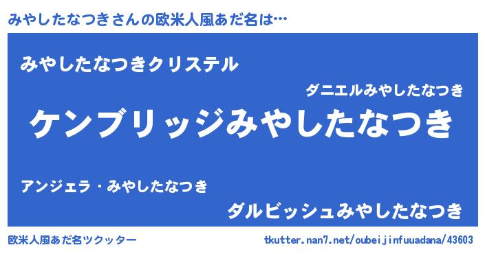 | 意味不明あだ名 | 『自称みやしたなつき』 |