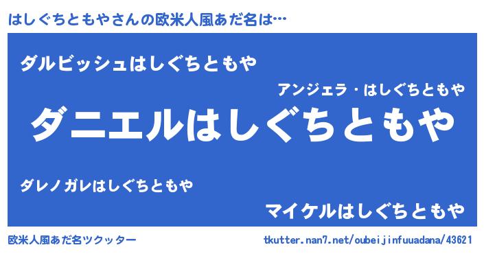 | 男性向けラノベタイトル風あだ名 | 『ノーゲーム・ノーハシグチトモヤ』 |