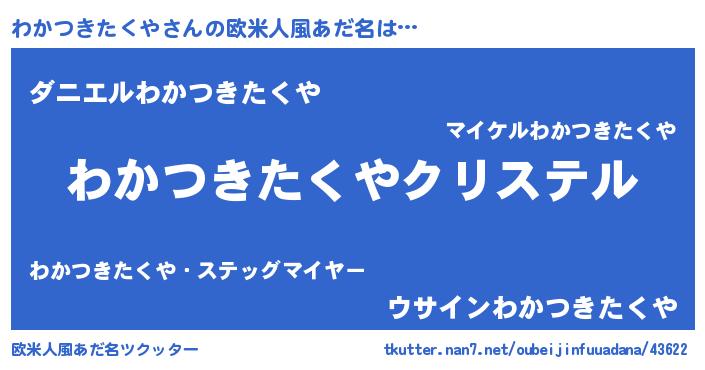 | ファンタジー風あだ名 | 『エターナルワカツキタクヤー』 |