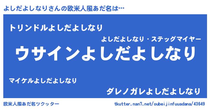 | 男性向けラノベタイトル風あだ名 | 『ダンジョンによしだよしなりを求めるのは間違っているだろうか』 |