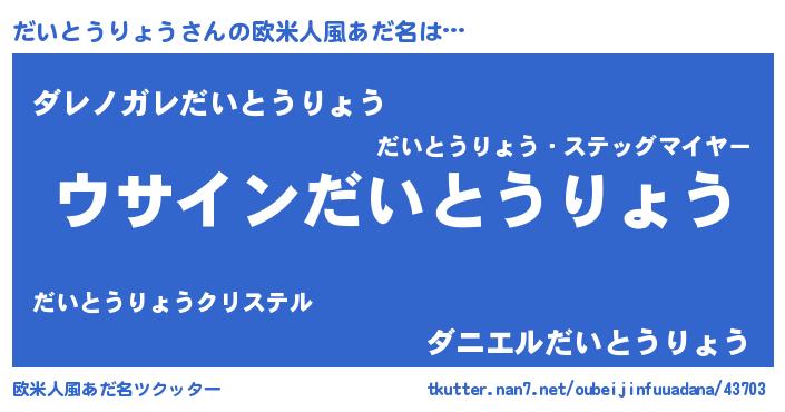 | 意味不明あだ名 | 『とにかく怪しいだいとうりょう』 |