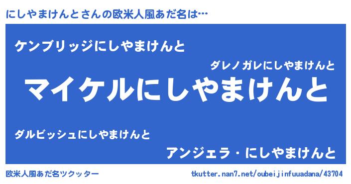 | 男性向けラノベタイトル風あだ名 | 『ニシヤマケントアートオンライン』 |