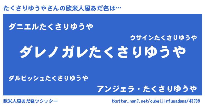 | ヘコむあだ名 | 『たくお』『たくさりゆうや(小並感)』 |