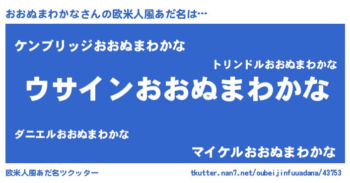 | 男性向けラノベタイトル風あだ名 | 『おおぬまわかなの嫁は女の子じゃないと思った?』 |