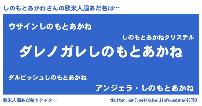 | 意味不明あだ名 | 『住所不定無職しのもとあかね(91歳)』 |