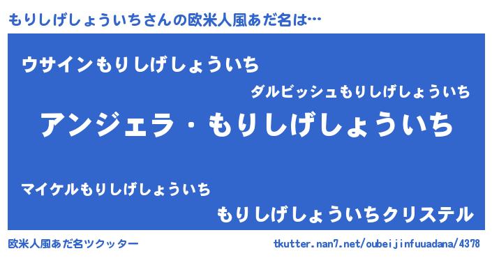 | 男性向けラノベタイトル風あだ名 | 『もりしげしょういちに滅ぼされるだけの簡単なお仕事です』 |