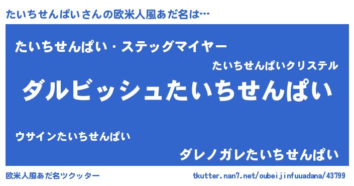 | 男性向けラノベタイトル風あだ名 | 『たいちせんぱいという概念が存在しない退屈な世界 』 |
