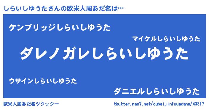 | 男性向けラノベタイトル風あだ名 | 『この素晴らしい世界にしらいしゆうたを!』 |