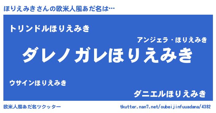 | 意味不明あだ名 | 『住所不定無職ほりえみき(3歳)』 |