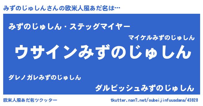 | 男性向けラノベタイトル風あだ名 | 『みずのじゅしんの嫁は女の子じゃないと思った?』 |
