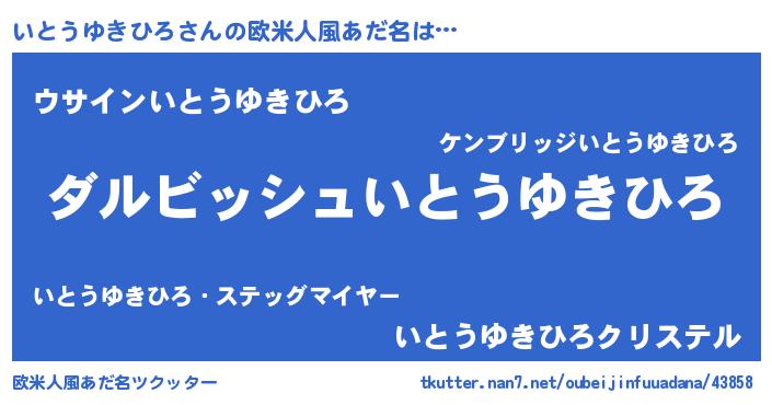| 女子向けラノベタイトル風あだ名 | 『異世界で失敗しない100のいとうゆきひろ』 |