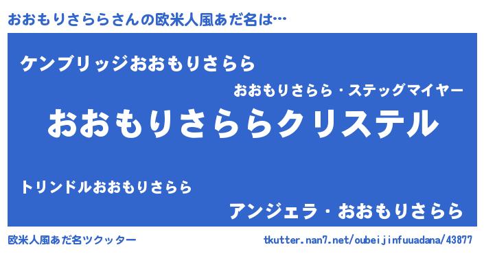 | 女子向けラノベタイトル風あだ名 | 『おおもりさららの雑貨屋さん』 |