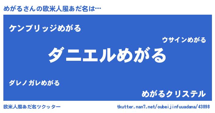 | 意味不明あだ名 | 『眠気覚ましガムめがる味』『自称めがる』 |