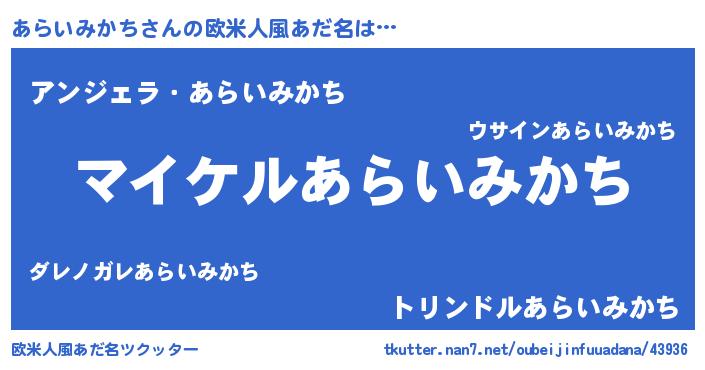 | 胡散臭い通販商品みたいなあだ名 | 『必ず成功する霊験あらたかなお札…その名も「あらいみかち」』 |