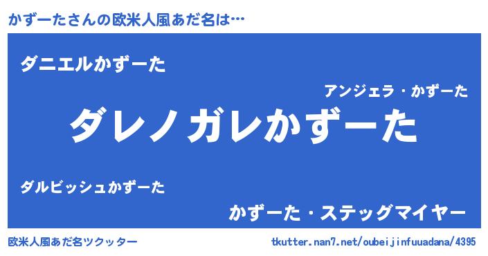 | 男性向けラノベタイトル風あだ名 | 『この素晴らしい世界にかずーたを!』 |