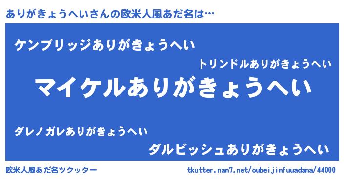 | 男性向けラノベタイトル風あだ名 | 『ありがきょうへいの憂鬱』 |