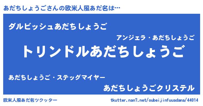 | 男性向けラノベタイトル風あだ名 | 『あだちしょうご~年齢イコール彼女いない歴の魔法使い~』 |