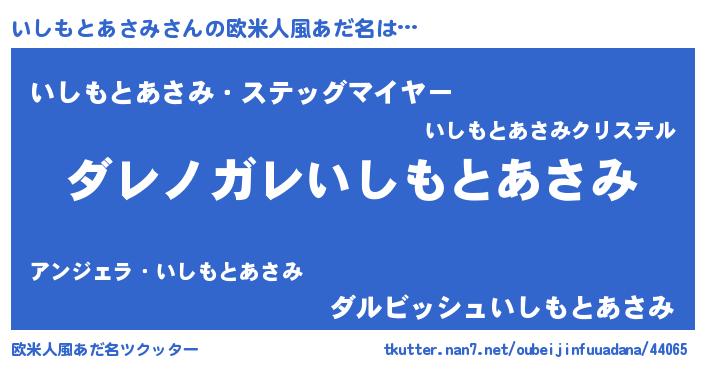 | 女子向けラノベタイトル風あだ名 | 『乙女ゲームの破滅フラグしかない悪役いしもとあさみに転生してしまった…』 |