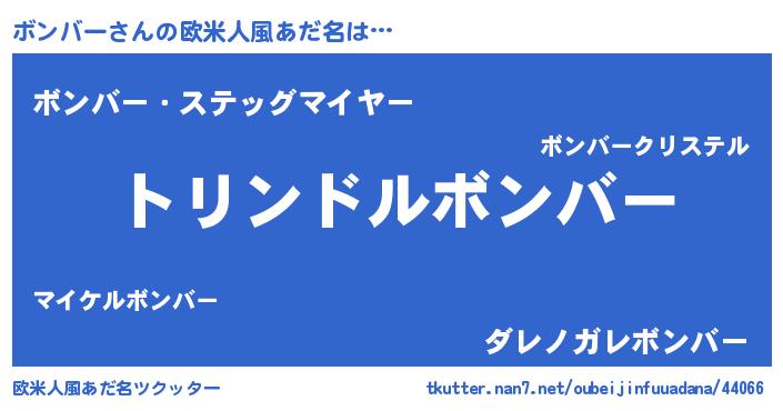 | 男性向けラノベタイトル風あだ名 | 『ボンバー~年齢イコール彼女いない歴の魔法使い~』 |